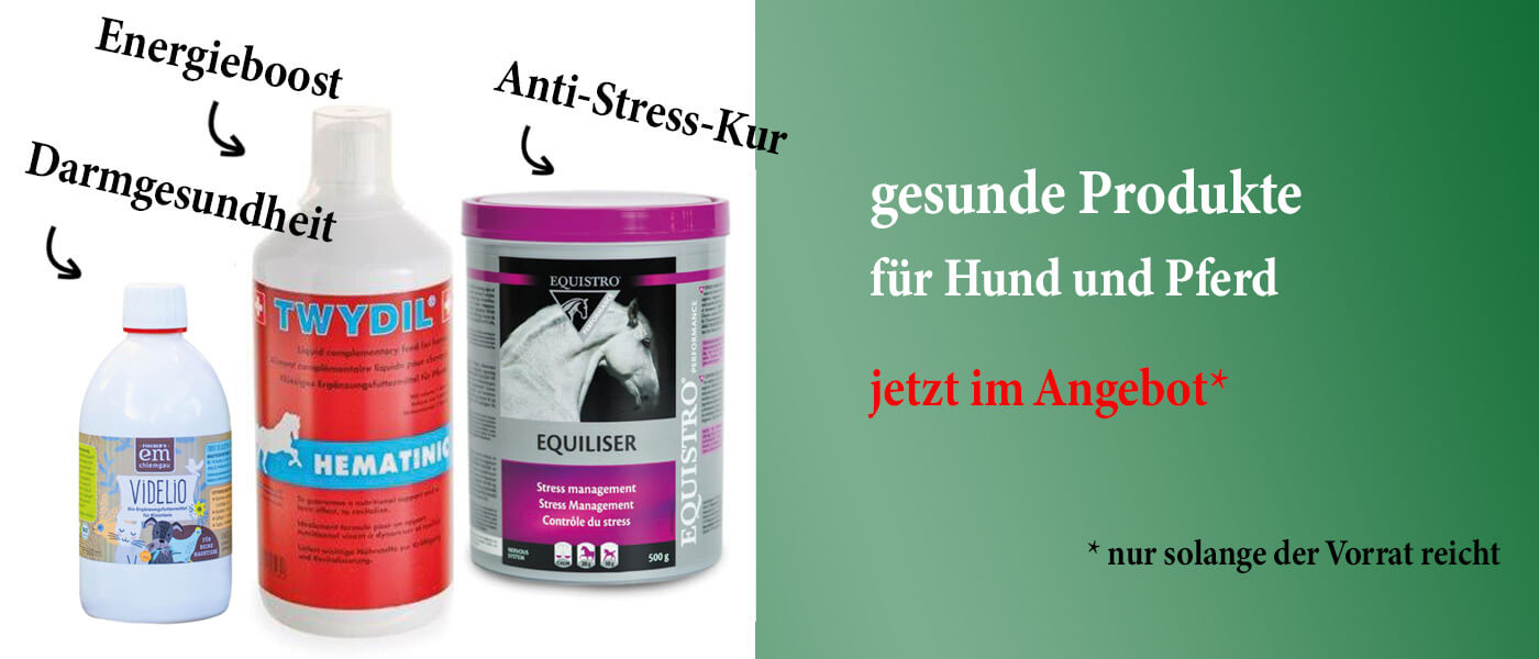 Für die beste Versorgung Ihrer Tiere, haben wir hochwertige Produkte für Sie zusammengestellt. Das Sortiment umfasst von Tierärzten und Tierheilpraktikern jahrelang getestete und empfohlene Produkte. Nahrungsergänzungsmittel wie Vitamine, Mineralien, Aminosäuren, Gelenk- und Verdauungsförderer sowie Präparate für das Fell und die Haut. Außerdem können Sie persönliche Beratungen bei unserer Tierärztin buchen.